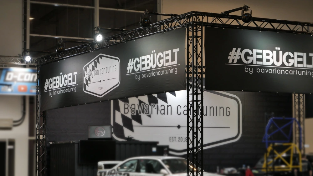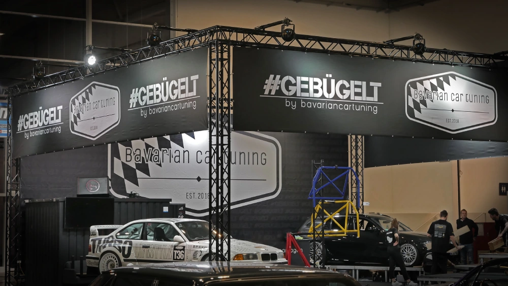 • Kurzbeschreibung: Zum zweiten Mal in Folge haben wir Bavarian Car Tuning bei der Gestaltung ihres Messestands auf der Essen Motor Show unterstützt. Hierfür wurde eine Traversenkarre mit Ground-Support verwendet, selbstverständlich mit unseren eleganten schwarzen Traversen von Milos.